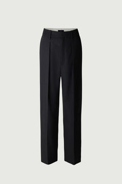 FIDELE is a draped gray wool-viscose gabardine blouse, fitted to highlight the waist. Long sleeves and round neckline add refinement. An invisible back zip and side slit complete this sophisticated top.