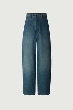 GARANCE is a greencast denim shirt, loose and retro. Long sleeves with buttoned cuffs add character. Patch pockets and subtly green dye give a vintage touch.