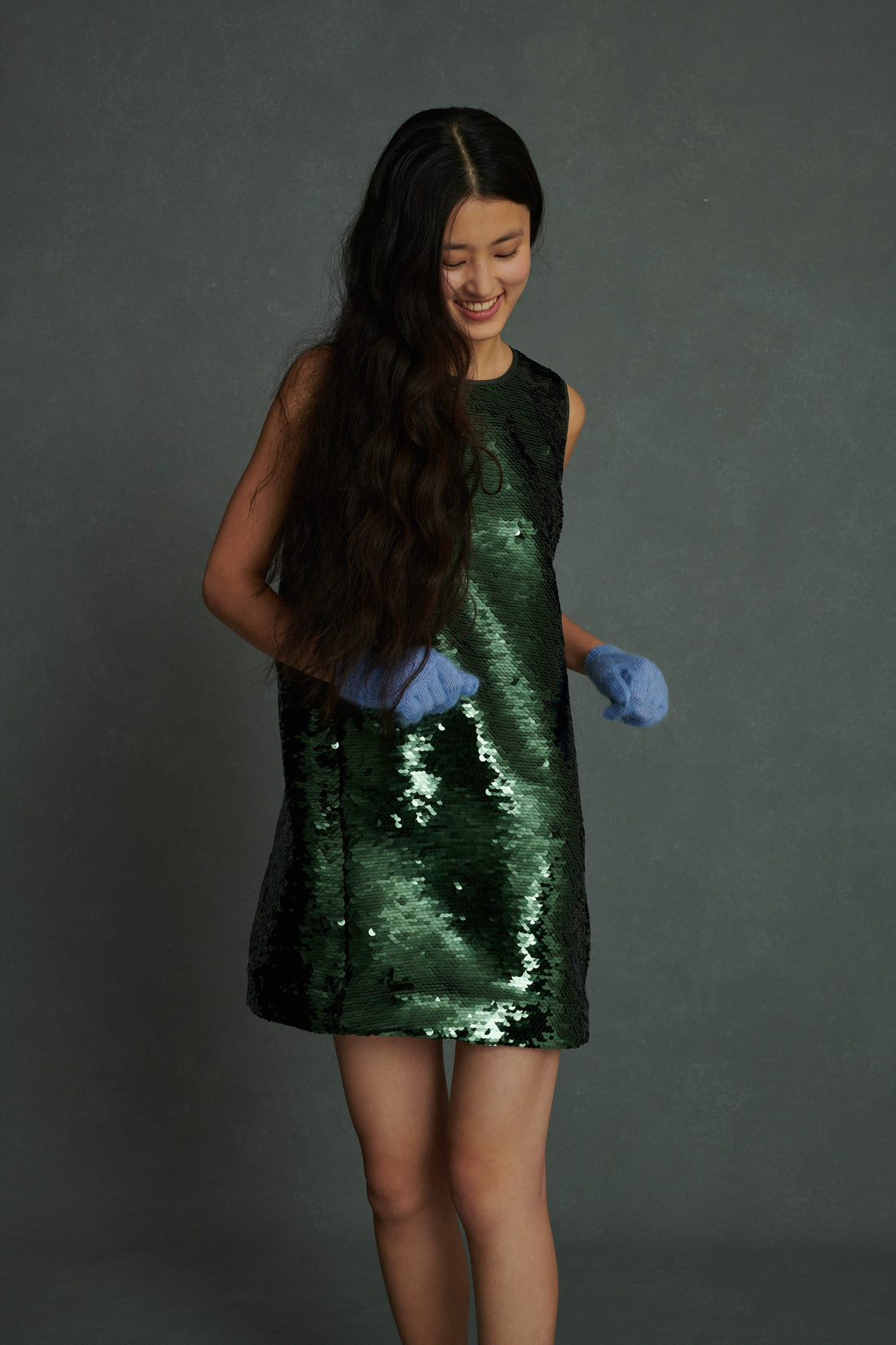 La mannequin is 1m72 (5'8) tall and wears a size 38.